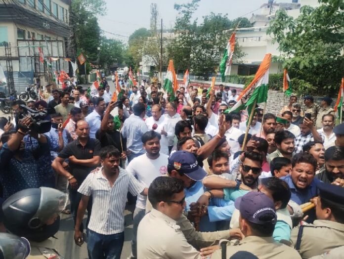देहरादून। नेशनल हेराल्ड केस में कांग्रेस नेताओं सोनिया गांधी और राहुल गांधी के खिलाफ प्रवर्तन निदेशालय (ईडी) द्वारा चार्जशीट दाखिल किए जाने और उनकी संपत्तियों को जब्त करने की कार्रवाई के विरोध में आज देहरादून समेत पूरे उत्तराखंड में कांग्रेस कार्यकर्ताओं ने जोरदार प्रदर्शन किया। राजधानी में हुए इस प्रदर्शन ने खासा तूल पकड़ा, जहां कांग्रेस नेताओं और पुलिस के बीच जमकर कहासुनी और धक्का-मुक्की भी हुई।