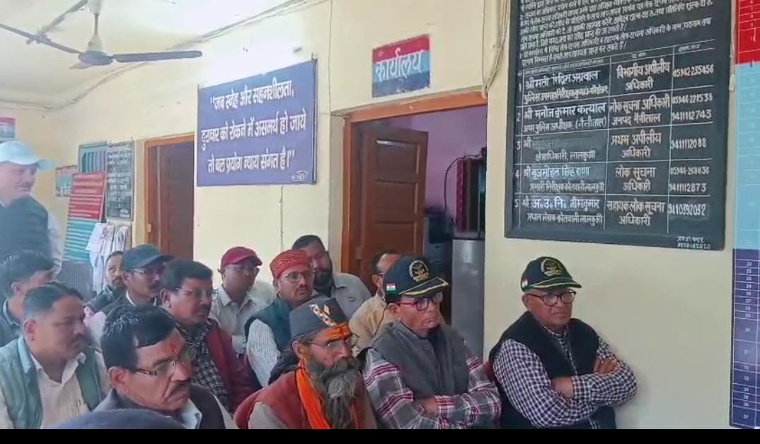बिंदुखत्ता राजस्व गांव की मांग को लेकर कोतवाली लालकुआं में प्रशासन और आन्दोलनकारियों की बैठक” राजस्व गांव की मांग पर आर-पार का मूड, प्रशासन और संघर्ष समिति आमने-सामने—शांतिपूर्ण आंदोलन की अपील, सिटी मजिस्ट्रेट, एसपी सिटी, एसडीएम और तहसीलदार कर रहे मंथन, कल 18 फरवरी की महारैली को लेकर तैयारियों पर चर्चा, प्रशासन ने दिए दिशा निर्देश।