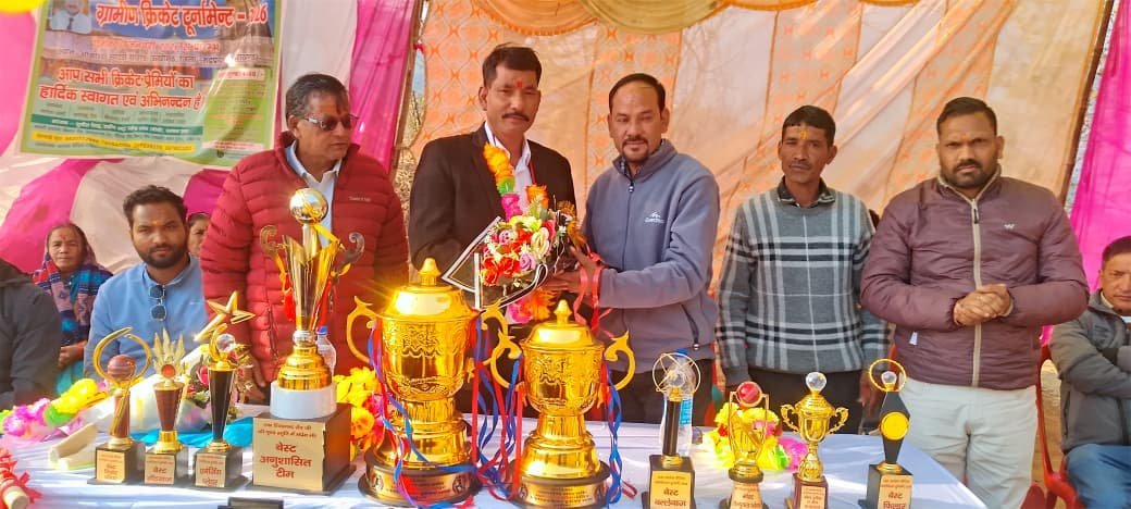 खबर है ऊखीमठ ब्लॉक से आपको बता दें कि सोमवार को उत्तराखंड राज्य आन्दोलनकारी अमर शहीद अशोक केशिव किक्रेट मेमोरियल टूर्नामेंट में विजेता रही अटैक कल्ब त्रियुगीनारायण वहीं उप विजेता रही केदार बाबा कल्ब शेरसी बडासू आपको जानकारी देते हुए बता दें कि सोमवार को ओंकारेश्वर स्पोर्ट्स ग्राउंड ऊखीमठ में उत्तराखंड राज्य आन्दोलनकारी अमर शहीद अशोक केशिव ग्रामीण क्रिकेट टूर्नामेंट का फाइनल मुकाबला अटैक कल्ब त्रियुगीनारायण व केदार बाबा कल्ब शेरसी बडासू टीम के बीच खेला गया जिसमें टास जीतकर पहले बल्लेबाजी करते हुए अटैक कल्ब त्रियुगीनारायण ने निर्धारित 15 अवोरो में 110 रन बनाए और विपक्षी टीम केदार बाबा कल्ब शेरसी बडासू को फाइनल मुकाबला जीतने के लिए 111 रनों का लक्ष्य दिया वहीं केदार बाबा कल्ब शेरसी बडासू की टीम ने 111 रनों का लक्ष्य का पीछा करते हुए निर्धारित 15 अवोरो में 93 रन बनाकर ओल टीम आउट हुई और अटैक कल्ब त्रियुगीनारायण 17 रन से फाइनल मुकाबला जीतकर चमचमाती ट्राफी व एक लाख रुपए की धनराशि अपने नाम की वहीं केदार बाबा कल्ब शेरसी बडासू टीम ने अच्छे टक्कर देते हुए उप विजेता होने पर 51 हजार व चमचमाती ट्राफी अपने नाम की वहीं अटैक कल्ब त्रियुगीनारायण की और से सुधाकर द्वारा शानदार गेंदबाजी की गई और केदार बाबा कल्ब शेरसी बडासू की और से कप्तान कमलेश भट्ट द्वारा शानदार गेंदबाजी की गई फाइनल मुकाबले में बतौर मुख्य अतिथि सामाजिक कार्यकर्ता दीक्षा प्रोपर्टी के संस्थापक कुलदीप सिंह रावत द्वारा शिरकत करते हुए दोनों टीमों को बधाई व शुभकामनाएं दी गई वहीं कुलदीप सिंह रावत ने कहा कि उन्हें केदारनाथ विधानसभा से विगत 20 सालों से बहुत समान सम्मान और प्यार प्रेम मिला है कहा कि जिस परिवार व गरीब व्यक्ति व किसी भी आम जनमानस को उनकी जरूरत पड़े तो व हर किसी की हर प्रकार की मददत करने के लिए 24 घंटे तत्पर तैयार है रावत ने उत्तराखंड राज्य आन्दोलनकारी अमर शहीद अशोक केशिव के परिवार व उनके बड़े भाई प्रमोद केशिव व अरविंद कैशिव का धन्यवाद व आभार व्यक्त किया साथ ही कमेटी के अध्यक्ष गणेश वर्मा कोषाध्यक्ष रिशित शैव व हर एक कार्यकर्ता को अच्छे टूर्नामेंट की बधाई व शुभकामनाएं दी वहीं विशिष्ट अतिथि पूर्व जिला पंचायत अध्यक्ष सुमंत तिवारी ने बतौर अतिथि शिरकत करते हुए दोनों टीमों को बधाई व शुभकामनाएं दी और कहा कि केदारघाटी के हर क्षेत्र में जहां जहां उन्होंने निमंत्रण दिया जाता है व वहां पेश होते हैं वहीं 1 जनवरी 2026 को उत्तराखंड राज्य आन्दोलनकारी अमर शहीद अशोक केशिव किक्रेट मेमोरियल टूर्नामेंट का उद्घाटन किया गया था जिसमें 72 टीमों ने प्रतिभाग किया वहीं क्रिकेट टूर्नामेंट में कोमेट्री हरीश चन्द्र सोहन चुनियाल, शिवा त्रिवेद