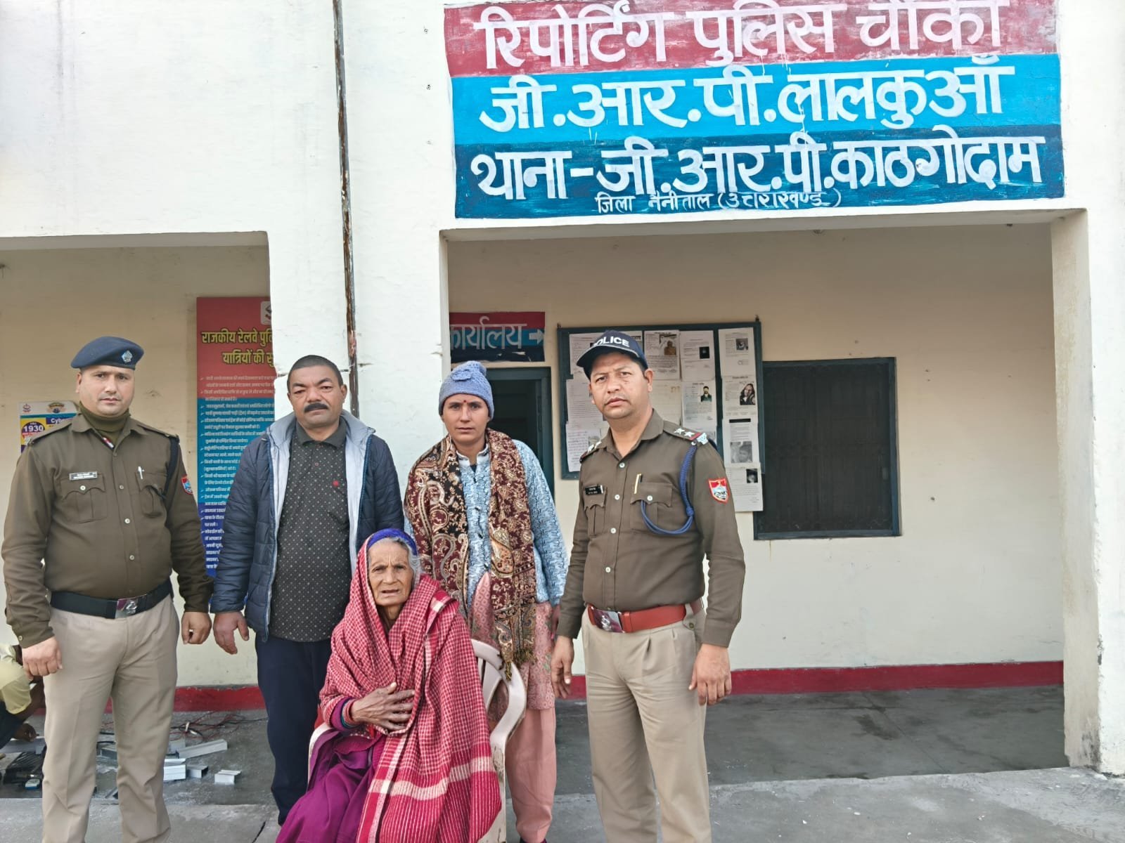 10.02.2026 को गंगा देवी पत्नी दरबान सिंह निवासी गांधीनगर बिंदुखत्ता थाना लालकुआं नैनीताल ने चौकी जीआरपी लालकुआं आकर बताया कि मेरे पति दरबान सिंह पुत्र राम सिंह निवासी उपरोक्त व मेरा भाई कृपाल सिंह पुत्र मोहन सिंह निवासी ग्राम नानी पनियाली शामा जनपद बागेश्वर मेरी माता भवानी देवी पत्नी मोहन सिंह निवासी नानी पनियाली शामा बागेश्वर उम्र करीब 82 वर्ष को उपचार हेतु रेलवे स्टेशन पन्तनगर से भोजीपुरा को रामनगर-कासगंज पैसेन्जर ट्रेन से जा रहे थे रेलवे स्टेशन पन्तनगर में मेरे पति मेरी माताजी व भाई को ट्रेन में बैठाकर टिकट लेने चले गये थोडी देर में ट्रेन चलने लगी तो मेरा भाई जो ट्रेन में पहली बार बैठा था मेरी माताजी को ट्रेन में ही बैठाकर मेरे पति को देखने चले गया और मेरे पति के साथ बाद में पीछे लास्ट वाले डिब्बे में बैठ गये और रेलवे स्टेशन भोजीपुरा में उतर गये ट्रेन में उनको मेरी माताजी कही नही दिखी मेरी माता काफी बुजुर्ग है वो ना ही हिन्दी बोल पाती है।